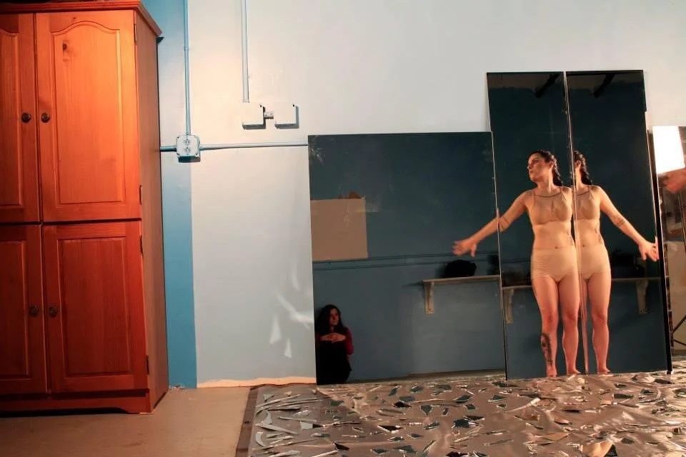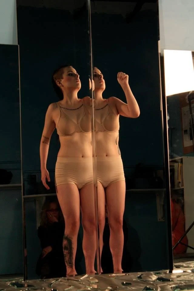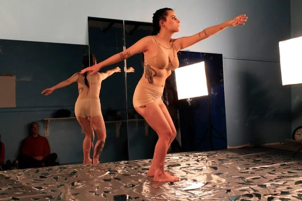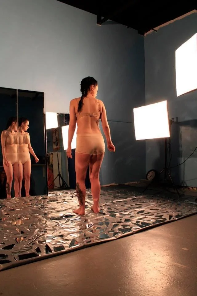 BODY OBSERVATION is essentially the broken-down exploration through expanded, slowed movement of the visual "Female Self" in both its neutrality, but also of the tainted-ness that is projected onto it everywhere from our own minds and from other minds; forcing the public to slow down and focus their own perspective by taking in these actions and thinking upon how the body "behaves".
